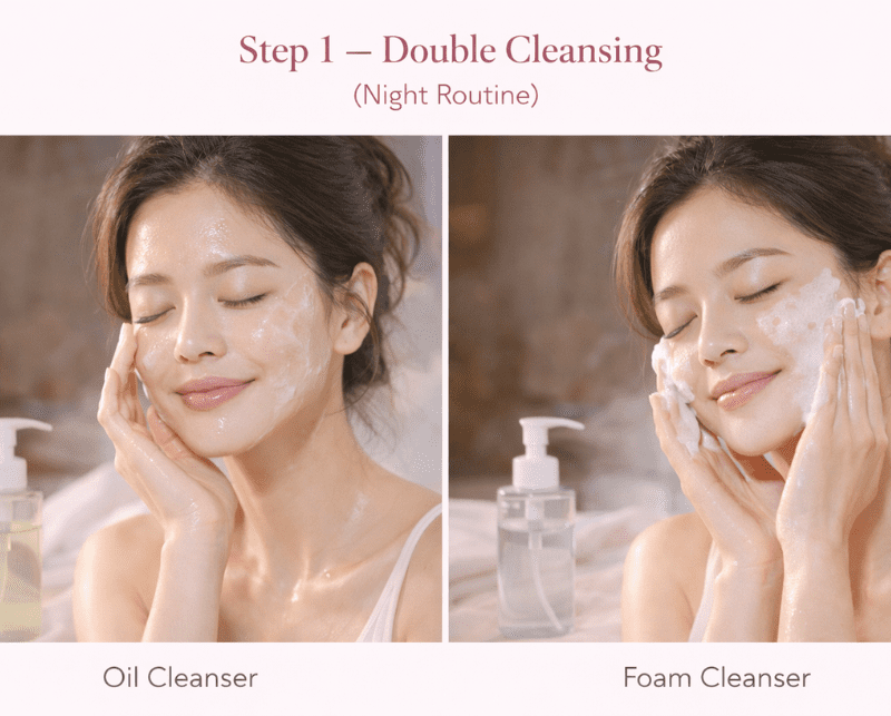 STEP 1 — DOUBLE CLEANSING (Night Routine)